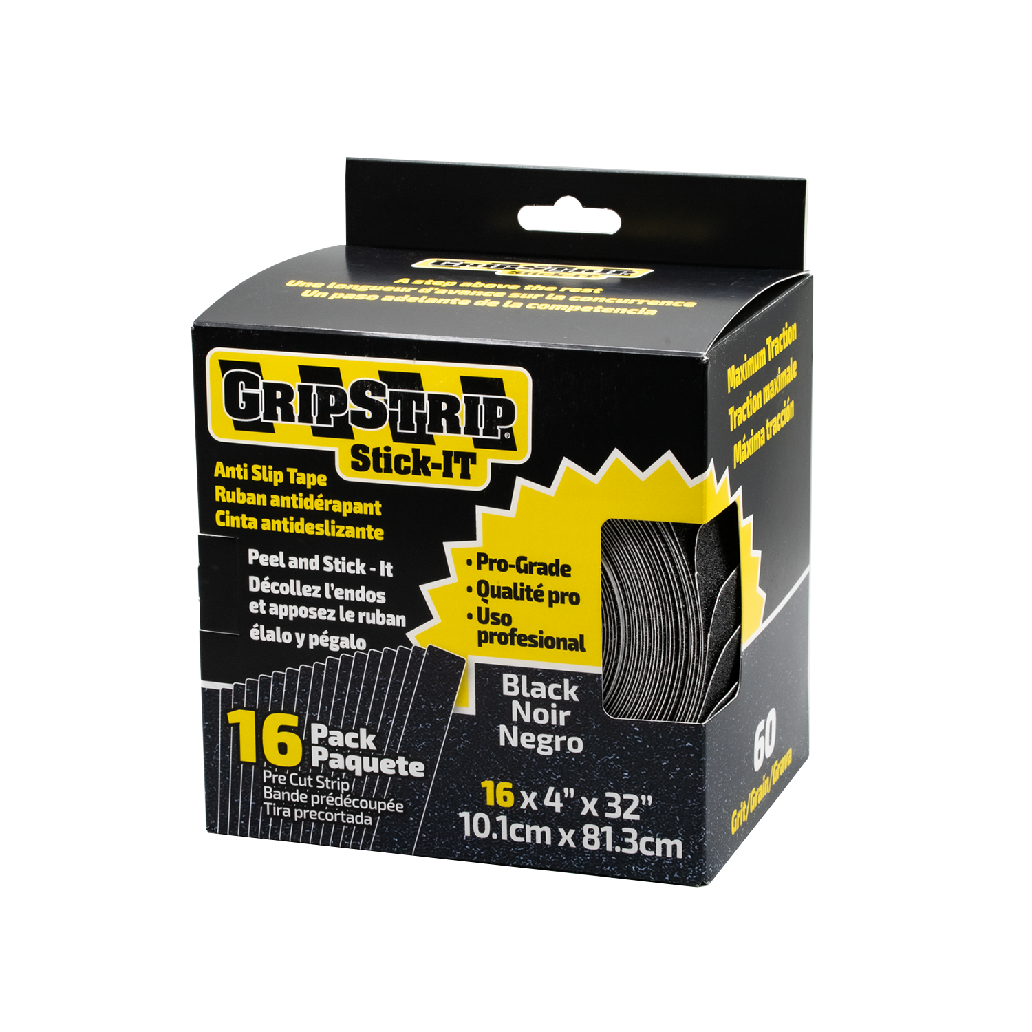 GripStrip® anti-slip tape helps provide safer footing by increasing traction on most surfaces. An economical choice, this durable PVC-based tape is easy to install, tough and waterproof. May help prevent slips and falls. Just peel and Stick-It !